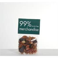 Header Sweet Bag - Fruit and Nut Mix Pack of 1 A healthy option for snacking or sprinkling over your breakfast. A large 50g fill in branded compostable/dissolvable sugar cane bag with full colour digitally printed header card to create a natural and ethical giveaway.